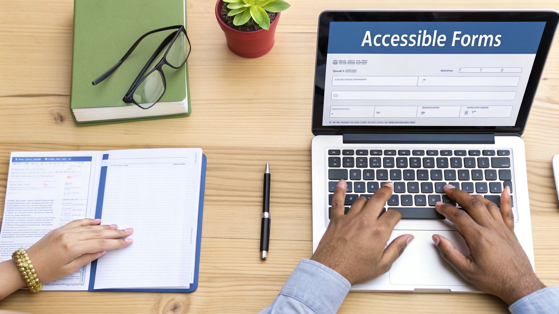 The fundamental principle is universal usability. An accessible form improves the experience for everyone, not just users with disabilities. For example, a clear visual focus indicator helps keyboard users and also guides mouse users. High-contrast text is essential for people with low vision but also makes the form easier to read for someone using their phone in bright sunlight. To ensure your forms are truly inclusive and meet the highest accessibility standards, familiarize yourself with the latest WCAG 2.2 guidelines.