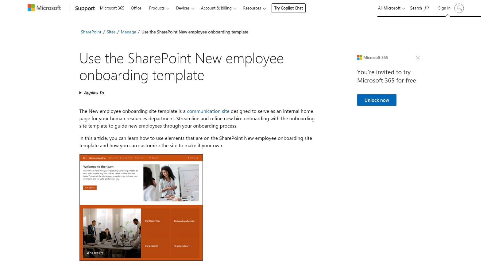 6. Microsoft 365 SharePoint — New Employee Onboarding template