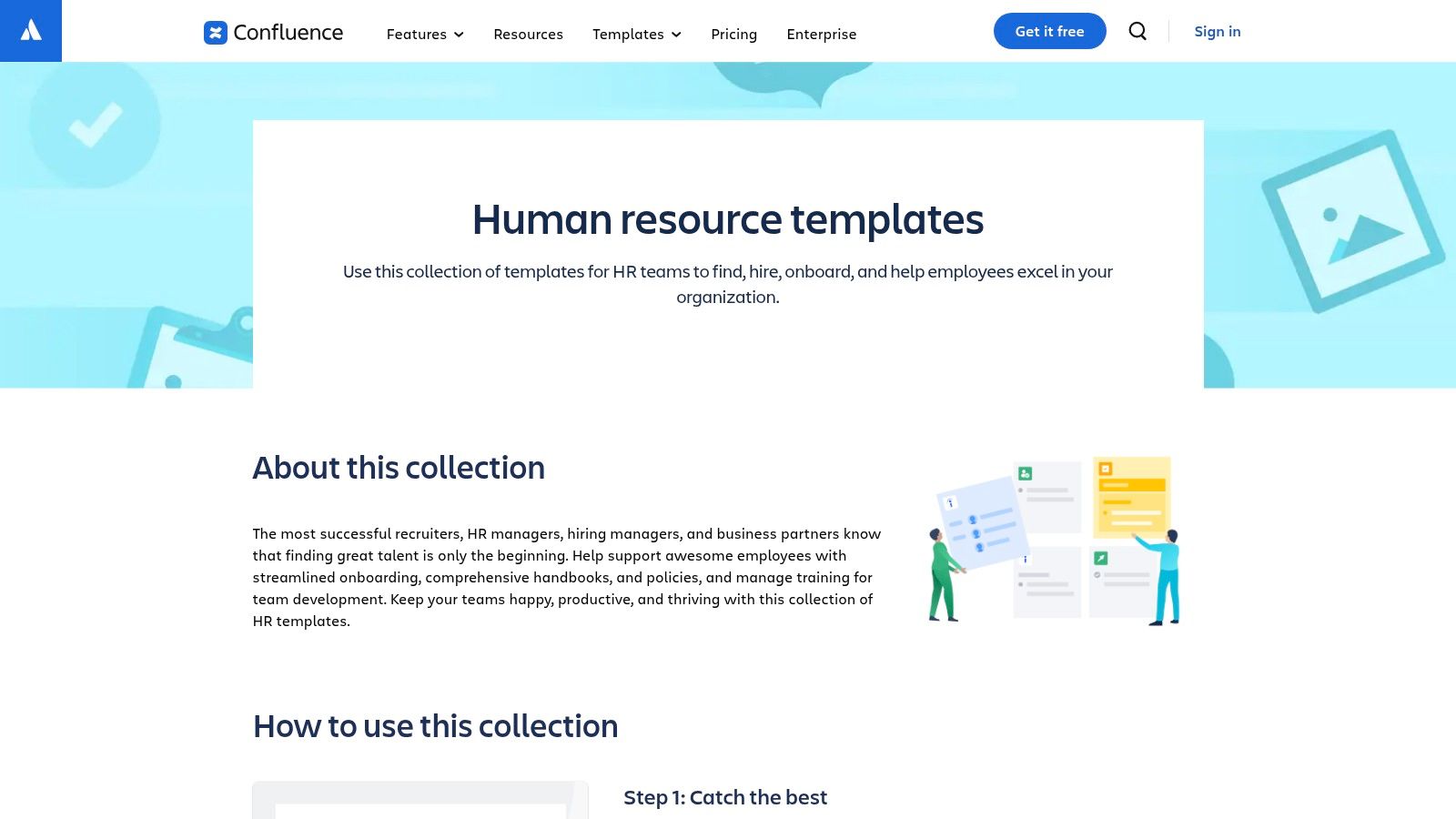 | Atlassian Confluence (HR) | Medium — requires adoption for best results; templates need tailoring | Confluence account; integrates with Jira/Trello; free for small teams | Medium — centralized documentation + onboarding pages, collaborative editing | Organizations that want knowledge base + onboarding content and Jira integration | ⭐ Source-of-truth pages, granular permissions, real-time editing |
