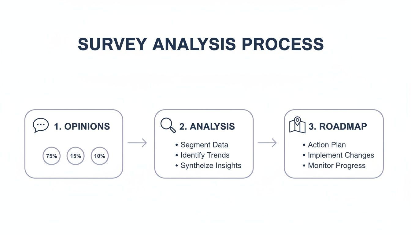 Survey analysis is how you turn a pile of raw feedback into smart, actionable insights that can actually drive your business forward. It's the process of cleaning up, organizing, and digging into survey responses to find the trends, patterns, and stories hidden within the data.