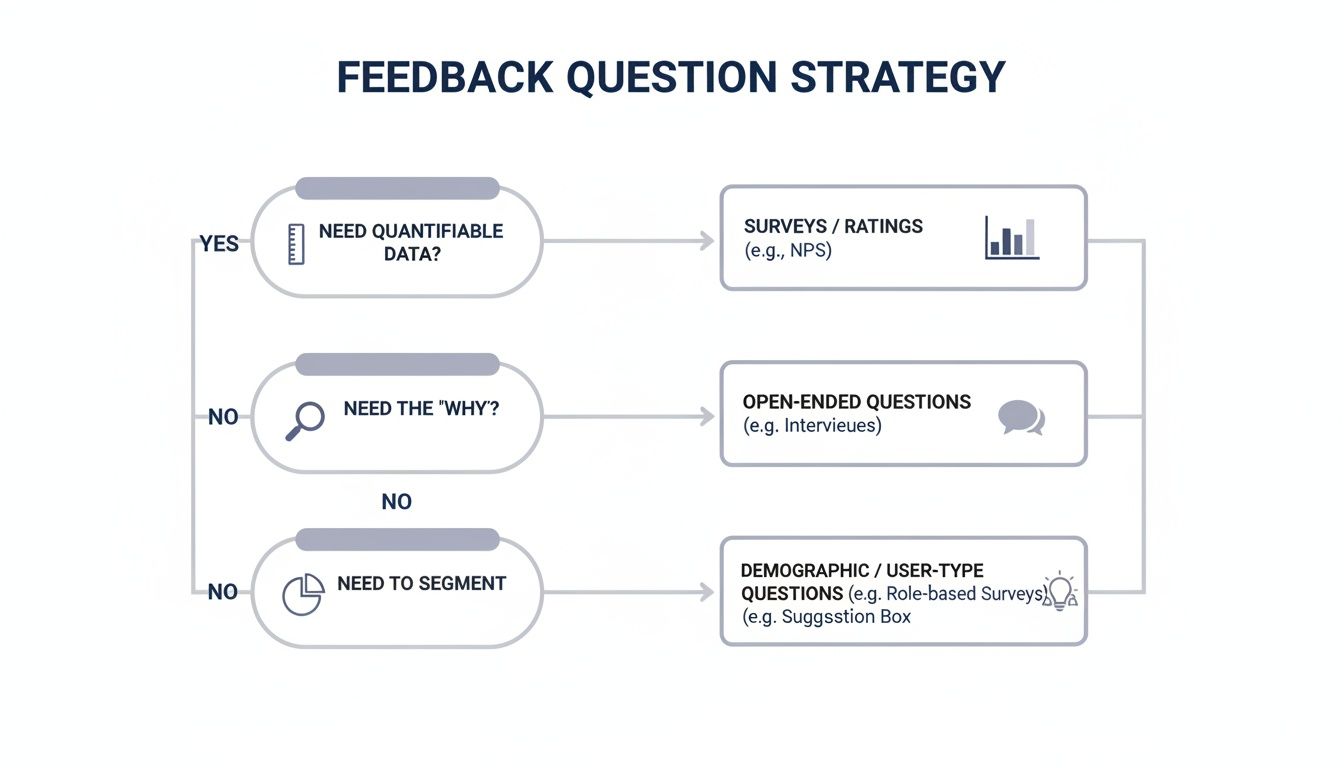 As you can see, the decision tree really clarifies how your primary goalâwhether it's getting measurable numbers, understanding the "why," or segmenting your audienceâshould drive your entire question strategy from the start.