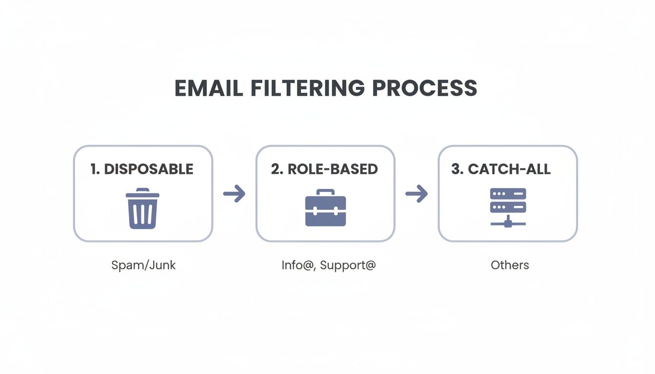 You can even use conditional logic to build a smarter user experience. For instance, if an email gets flagged as a catch-all, the form could dynamically pop up a new field asking for an alternate contact method. This kind of layered approach is a cornerstone of building effective, high-converting multi-step forms. For more on that, you can find some great ideas in these 7 high-converting multi-step form examples.